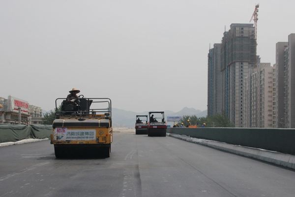 為保證此次試驗(yàn)段攤鋪?lái)樌M(jìn)行,公司領(lǐng)導(dǎo)和各部門(mén)多次到場(chǎng)指導(dǎo),同時(shí)攤鋪?lái)?xiàng)目部和二環(huán)南四標(biāo)項(xiàng)目部密切配合,精心策劃和研究橋面瀝青砂防水層施工方案。此次試驗(yàn)段攤鋪將合理確定施工機(jī)械數(shù)量及組合方式,確定攤鋪溫度、攤鋪速度、平衡梁找平方式、松鋪系數(shù)、接縫方法等操作工藝和技術(shù)數(shù)據(jù),為進(jìn)一步完善設(shè)計(jì)及施工方案,確保后續(xù)橋面瀝青攤鋪施工質(zhì)量、建設(shè)精品工程打下堅(jiān)實(shí)基礎(chǔ)。