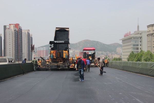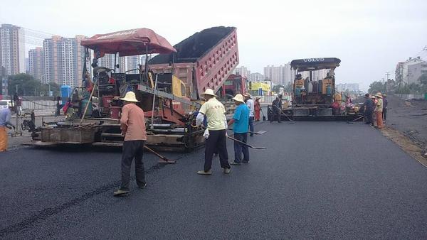 6月23日,二環(huán)南四標(biāo)進(jìn)行立交橋下快車道瀝青攤鋪。快車道底面層用粗粒式Ac-25面積為12000平方,中面層用中粒式Ac-16面積為14300平方。攤鋪前攤鋪?lái)?xiàng)目部提前計(jì)劃,合理安排,共組織4臺(tái)攤鋪機(jī),2臺(tái)壓路機(jī);攤鋪過(guò)程中現(xiàn)場(chǎng)施工人員緊密配合,加強(qiáng)對(duì)每一環(huán)節(jié)檢測(cè)控制與管理,保證了攤鋪質(zhì)量。預(yù)計(jì)到26日完成此次攤鋪任務(wù)。