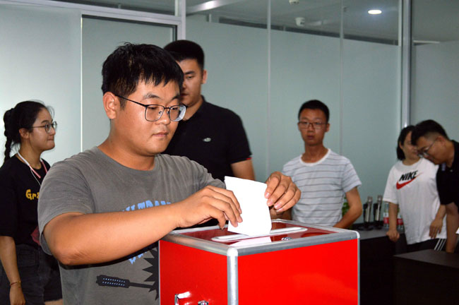 會上,首先由往屆團支部書記杜傳業通報團支部工作籌備情況,宣讀了集團團委對分公司團支部選舉大會的批示,并介紹了新一屆團支部委員會委員候選人情況。隨后,大會嚴格按照《團支部委員會選舉辦法》要求,先后審議通過了候選人名單、選舉辦法、監票人和計票人名單。通過現場無記名投票方式,大會差額選舉了丁鵬文、高建設、閆曉璇三位同志為新一屆團支部委員會成員,丁鵬文同志任團支部書記,高建設同志為團支部副書記兼組織委員,閆曉璇同志為團支部委員兼宣傳委員。